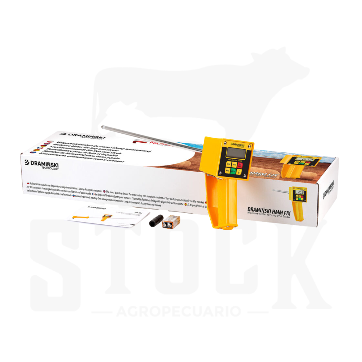 Medición precisa de humedad de heno y paja en fardos o cubos. Medición exacta de temperatura. Utilizado con éxito para medir la humedad de materiales para la producción de biomasa, pellet, tabaco, lúpulo, etc.